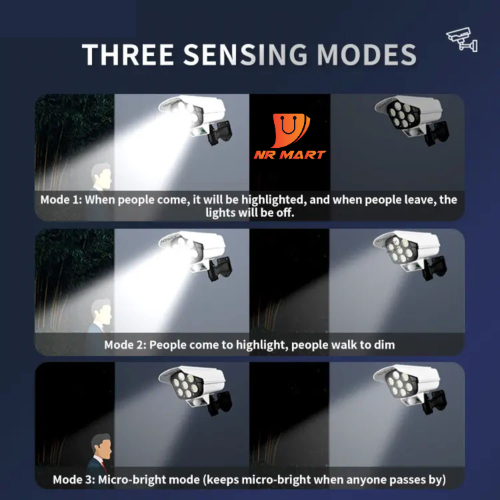 【3 adjustable lighting modes】 Solar security lights have 3 lighting modes to meet various environmental use. ①Motion sensor Mode: Motion sensor automatically turns the lights on when it detects motion and off after 20 seconds without motion detected; ②Dim light sensor mode: Dim light stays on at light and gets brighter when motion detected; ③Constant medium light mode: Stays on with medium light for Up to 15 Hrs continuous hours with or without motion detection.