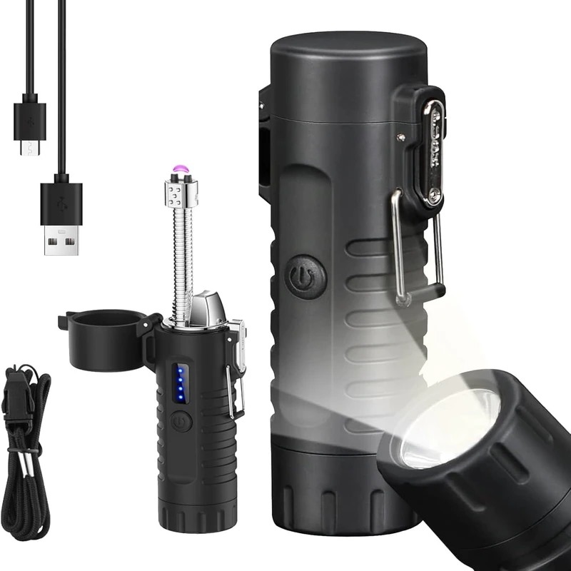 Scotte Plasma Windproof arc Lighter Electric Lighter and LED Flashlight - 2 in 1 (Black)/5-in-1 Magnesium Fire Starter for Emergency Survival Kits