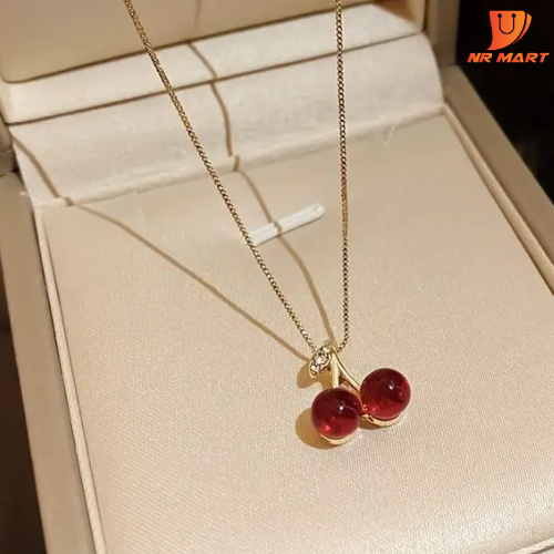18k Gold Plated Color Granted Cherry Charm Necklace-405