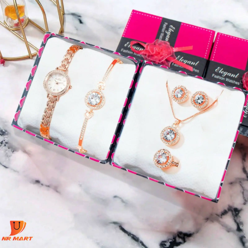 একটি সুন্দর গিফট সেট ১৪ ফ্রেরুয়ারি Valentine উপলক্ষে আপনার কাছে মানুষ কে গিফট করতে পারেন। ৫ পিচ সেট ১ টি বড় হাত ঘড়ি ১ টি বেসলেট ১ টি কানের দুল ১ টি গলার সেট ১ টি আংটি