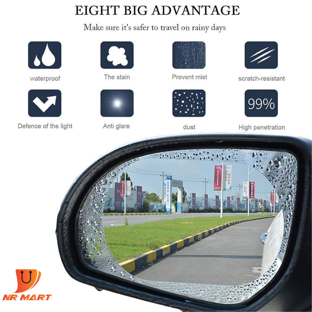 High Quality: Car Rearview Mirror Film,including 8 pieces,made of PET protective layer and nano- coating rain film, water droplets can spread quickly, no dew condensation.