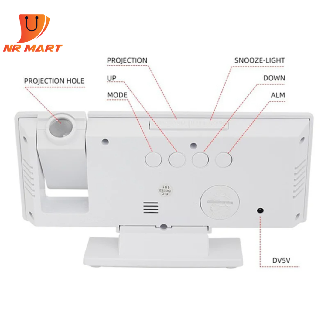 2. Time, alarm, snooze, backlight, projection, temperature
