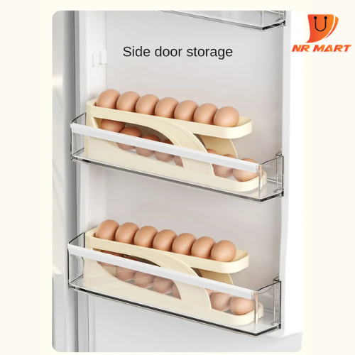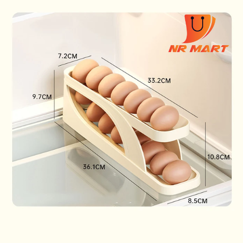 Features: Kitchen Automatic Scrolling Egg Rack Holder Storage Box Container Organizer Rolldown Refrigerator