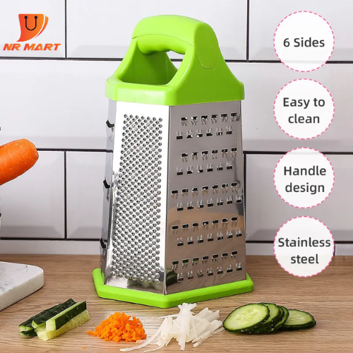 This grater has 6 sides for you to use, so it's great for slicing, grating, and dicing.