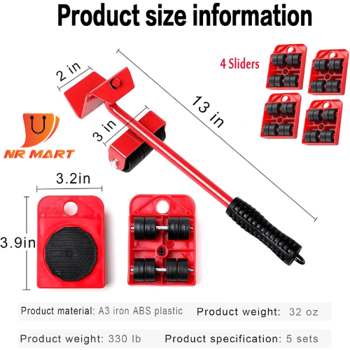 Furniture Lifter Tool Set. Heavy Furniture Moving System Lifter Kit W/ 4 Slider Glider Pad Sofa Easy Mover