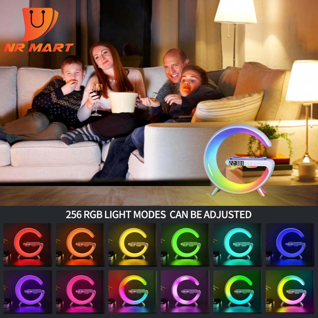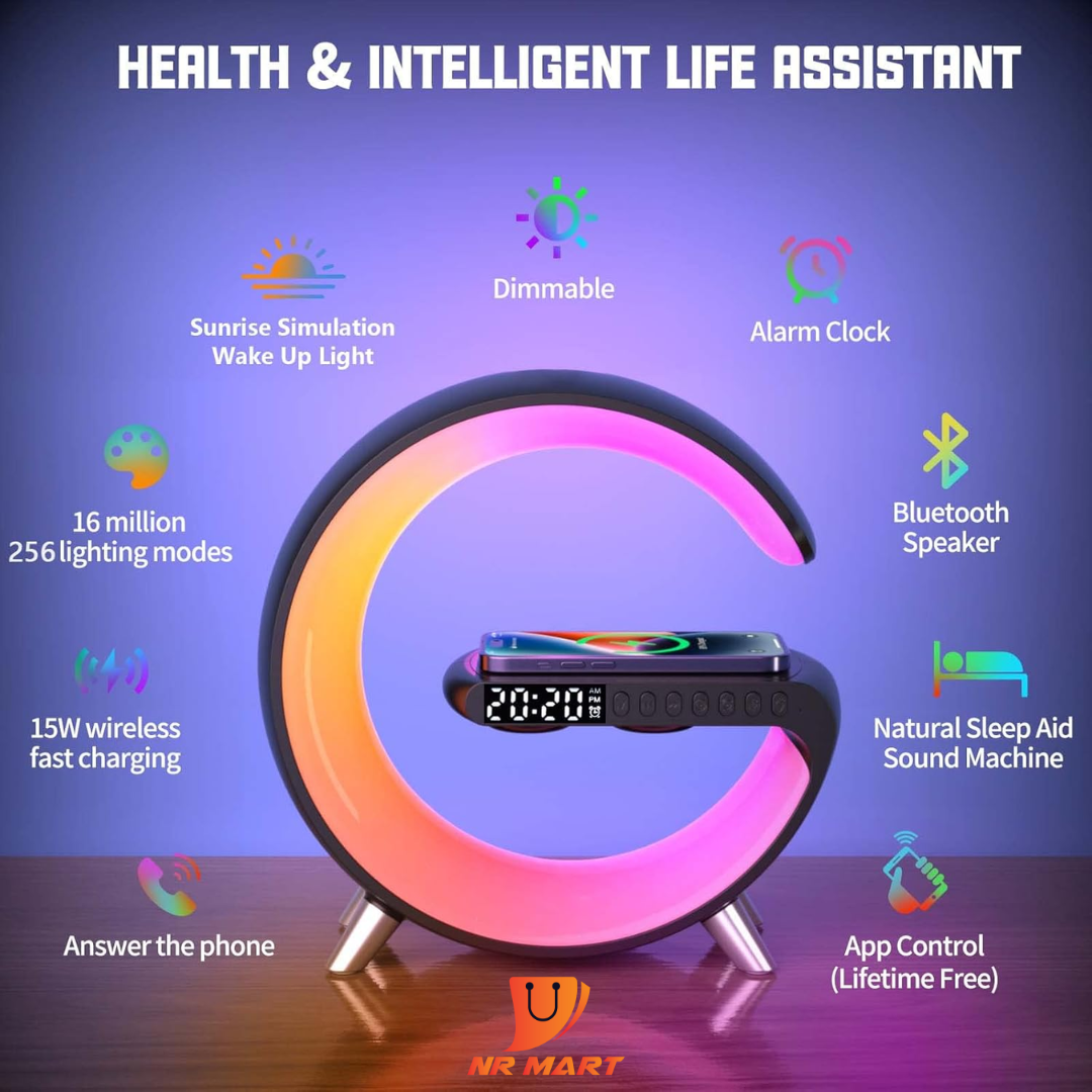 5IN1 Smart wireless Charger Table Lamp Bluetooth Speaker Alarm Clock RGB Colorful Atmosphere Lights