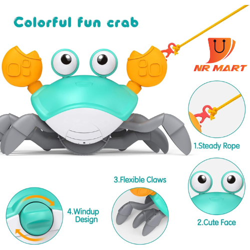 ঘড়ির কাঁটা ঘড়ির কাঁটার দিকে ঘোরান, তারপর এটি ব্যাটারির প্রয়োজন ছাড়াই জলে সাঁতার কাটে। আলতো করে দড়ি দিয়ে কাঁকড়া টানুন, তারপর এটি জমিতে হাঁটবে।