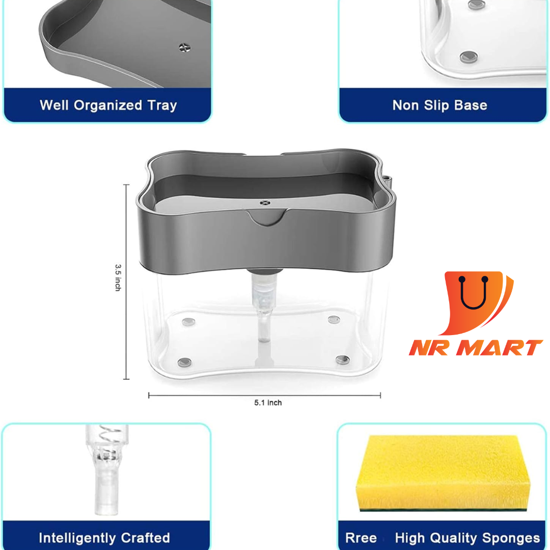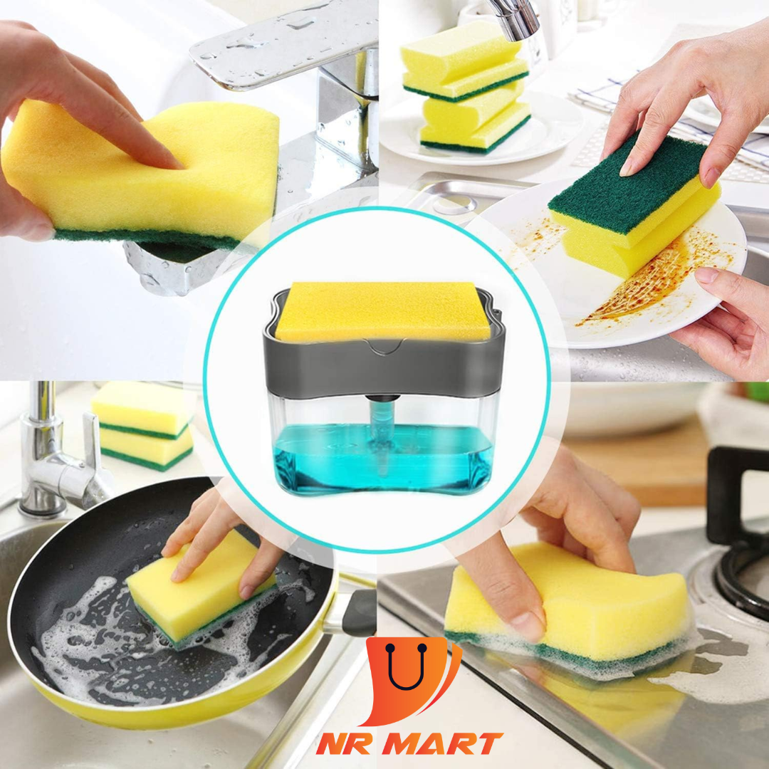 Liquid Soap Dispenser Soap Pump Sponge Caddy Holder Creative Hand Press Kitchen Dish Soap Dispenser with Washing Sponge-Smart Holder#Product Description:Simplify kitchen sink organization and dishwashing with this soap pump and sponge holder. Grippy feet help keep the unit steady on countertops. It holds up to 13 fluid ounces (385ml) of dish soap and dispenses the perfect amount directly on to the included sponge, with a press! Keep sponges out of the sink, high and dry with this caddy.Cleaning dishes is about to get a whole lot faster with this soap pump. Fill it up with 13oz of your favorite dish soap, then use the included sponge to press down on the pump, which dispenses the perfect amount of dish soap up onto the sponge. When you need more, just pump again for another shot of soap. No more stopping to grab the soap bottle. Any other sponge or scrubber will work with it too!Important:We truly believe we have some of the best products. If you don’t have a positive experience for any reason, we will do Whatever it takes to make sure you are 100% satisfied with your purchase. Buying items online can be a daunting task, so we want you to realize that there is absolutely ZERO risk in buying something and trying it out. If you don’t like it, no hard feelings we’ll make it right.Note:Light shooting and different displays may cause the color of the item in the picture a little different from the real thing. The measurement allowed error is +/- 1-3 cm. Please understand the thermal effect also depends on indoor temperature.
