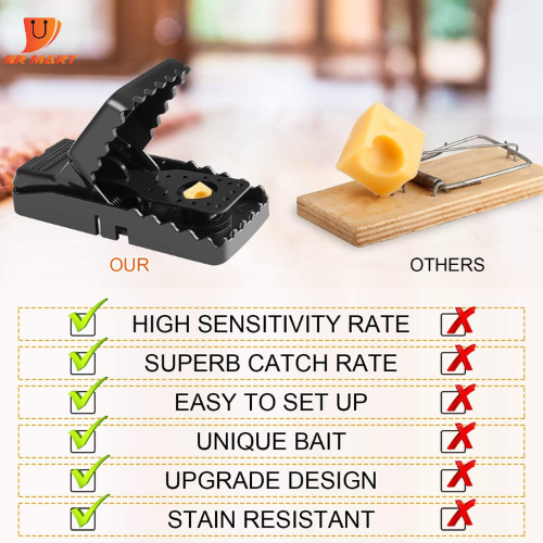 Highly Sensitive and Quick Kill – With powerful stainless-steel spring, these mice traps are designed to kill small mice and mouse, only 0.03lbs of weight needed to trigger the trap, quick and clean kill, with no mess and suffering.