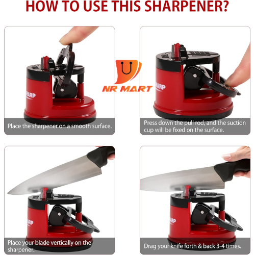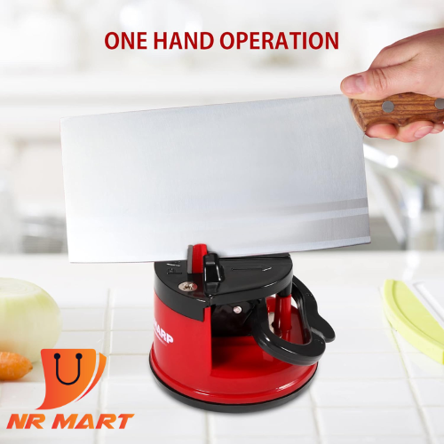 Suitable for sharpening kitchen knives, scissors etc, bread knives, suction pad and zinc blades locking handle