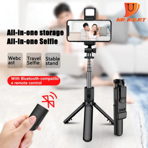 P20S - 1 Wireless Blutooth Selfi Stick With Led Fill Light Desktop Live Tripod Mobile Stand Portable Stretchable Holder Anti-Shake Stabilizer Selfie Stick Self-Timer Artifact Rod - Selfie Stick
