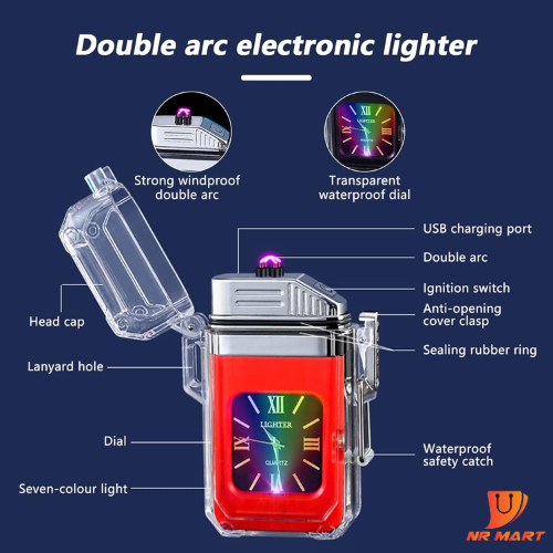 • Technology and Beauty Design This electric lighter is designed with a transparent body and comes with a quartz waterproof dial and seven-color dazzling lights, giving you a different feeling of combining technology and beauty.