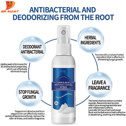 পা ও জুতার দুর্গন্ধের প্রধান কারণ জুতাতে জমে ঘাম এবং ব্যাকটেরিয়া। এটিতে এমন বৈশিষ্ট্য রয়েছে যা ব্যাকটেরিয়া দূর করতে এবং প্রতিরোধ করতে সহায়তা করে।