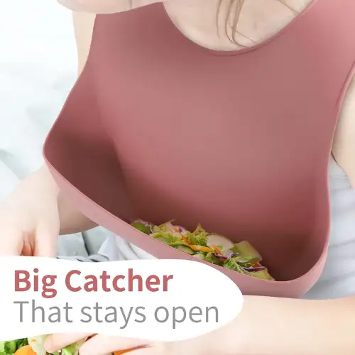 Wide Food Catcher - We designed the food catcher to contour around your toddler's chest for the baby feeding bib to stay straight even with a fussing toddler. The wide food catcher stays open throughout every feed and keeps your baby's clothes dry and clean.