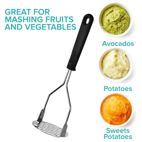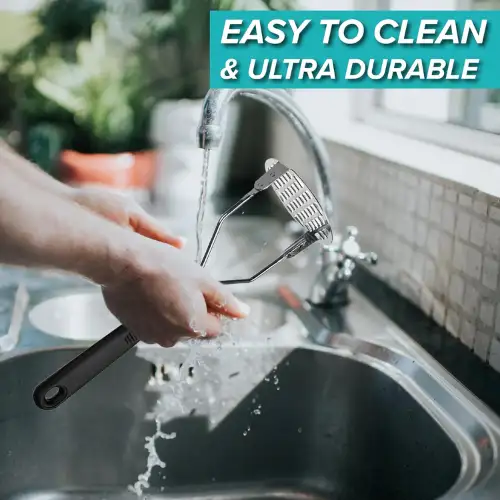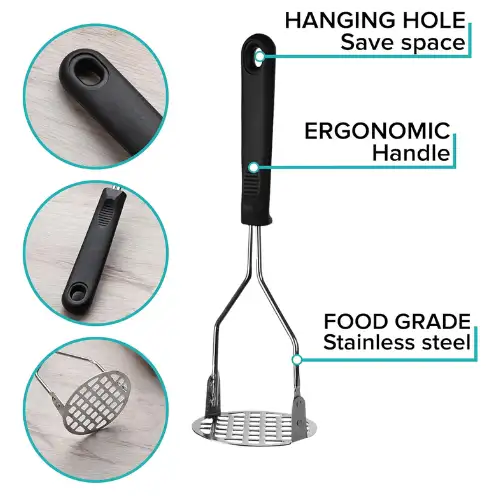 • Easy to Clean: This potato masher is heat resistant and very easy to clean. Clean it by hand or in a dishwasher.