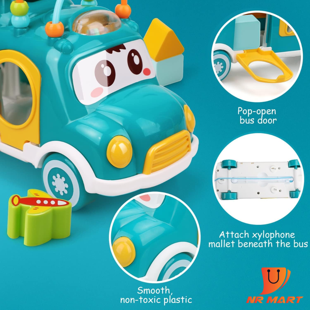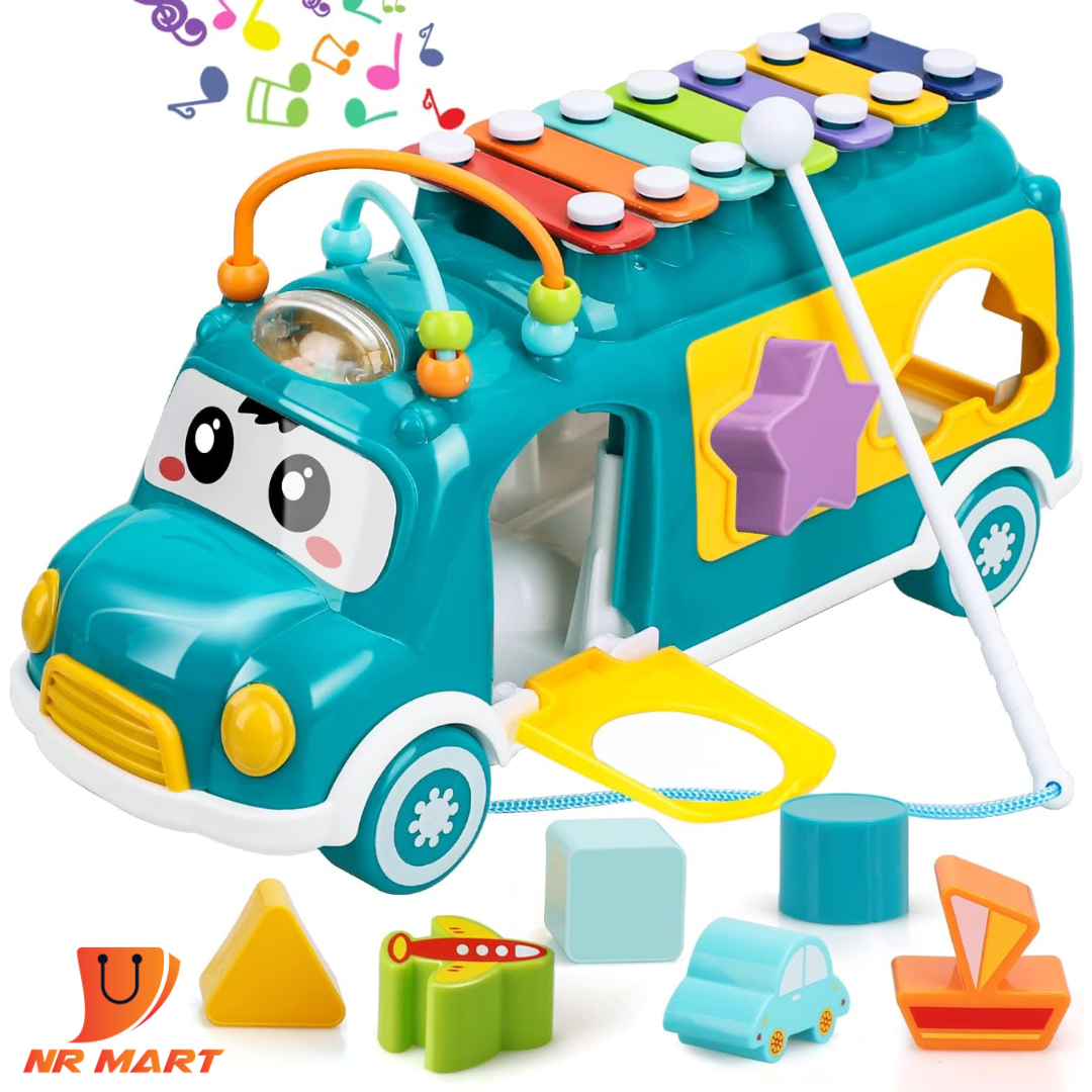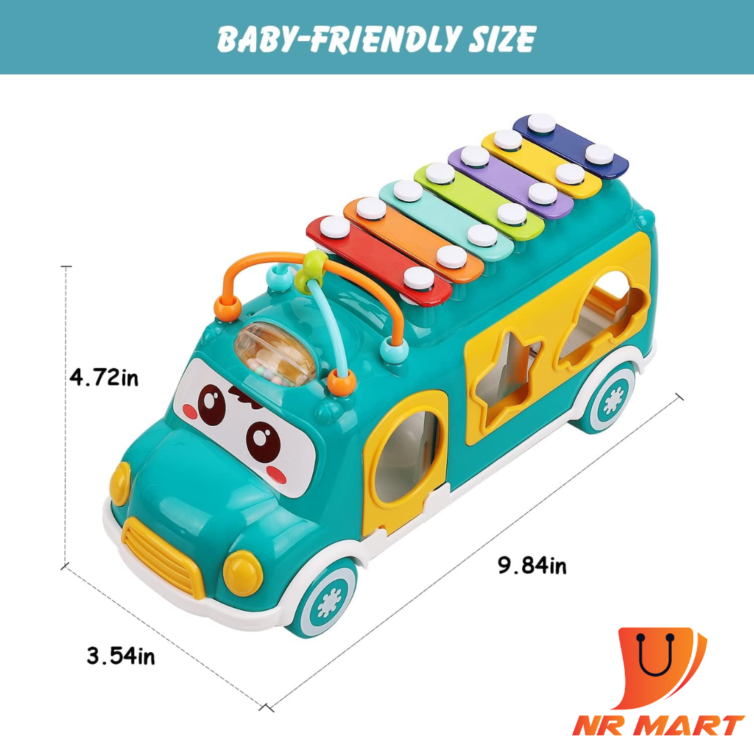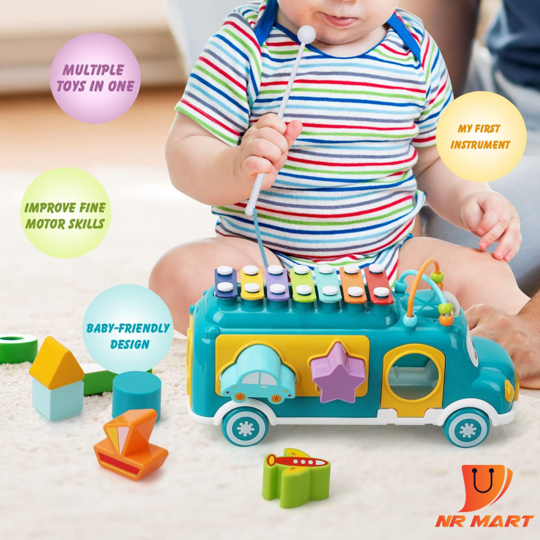 Toy Life Baby Musical Toys Xylophone Bus for Kids Musical Instruments – Baby Toys 12-18 Months with Bouncer Shapes and Building Blocks Music School Shape