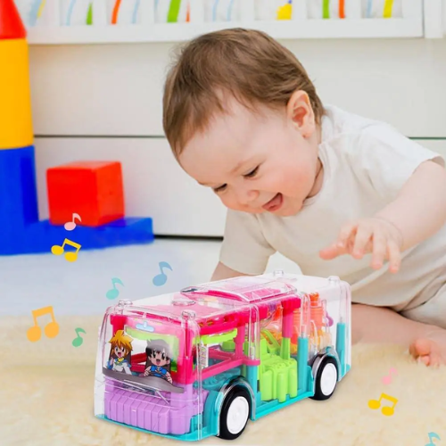Transparent বা স্বচ্ছ খেলনা বাসটি চতুর্দিকে চলতে পারে এবং বাচ্চারা সহজেই কন্ট্রোল করতে পারবে।