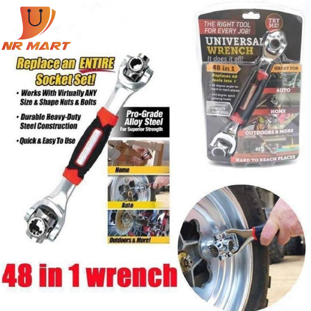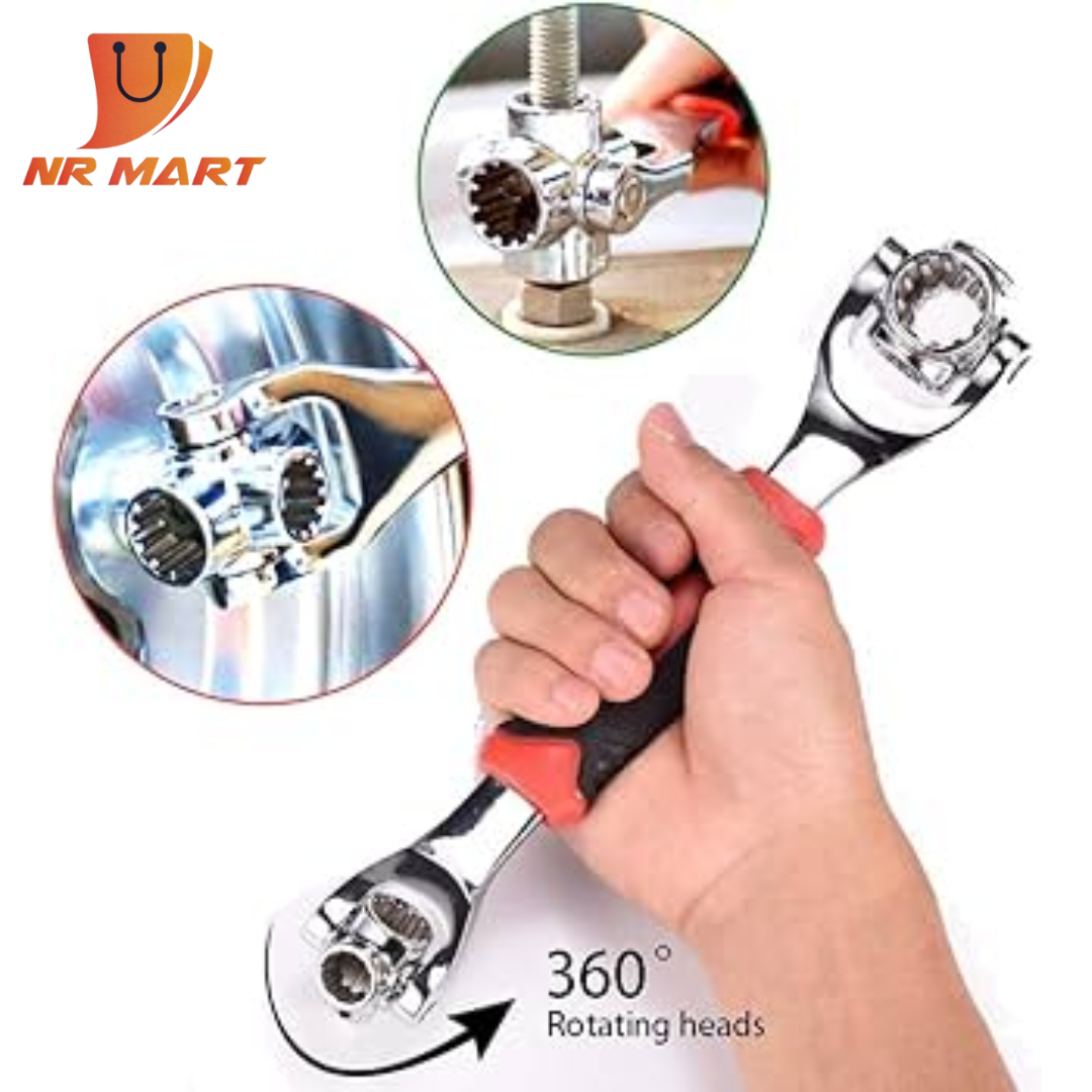 48-in-1 Multifunctional Socket Wrench,Multi-angle Wrench with 6 Corners, 360-Degree Rotating Head,Rubber Handle